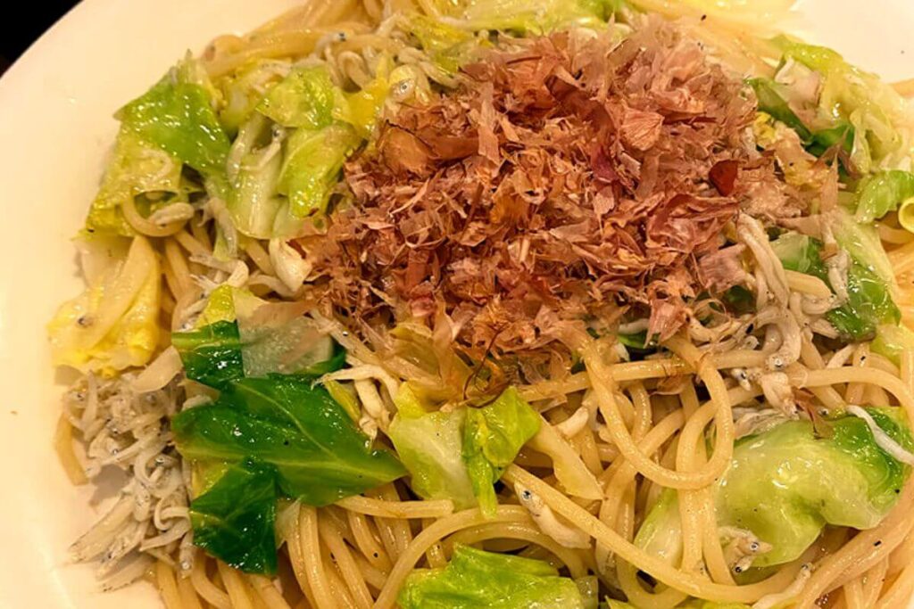 ①釜揚げシラスと春キャベツの醤油スパゲッティ